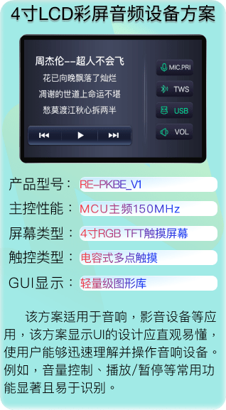 音乐,是生活中不可或缺的调味品。对于音乐爱好者来说,拥有一款性能卓越、操作便捷的HiFi音频功放设备,无疑是提升音乐体验的关键。今天,就让我们来探索一款全新的HMI方案 - 4寸LCD彩屏HiFi音频功放设备,它将如何改变我们的听觉世界。