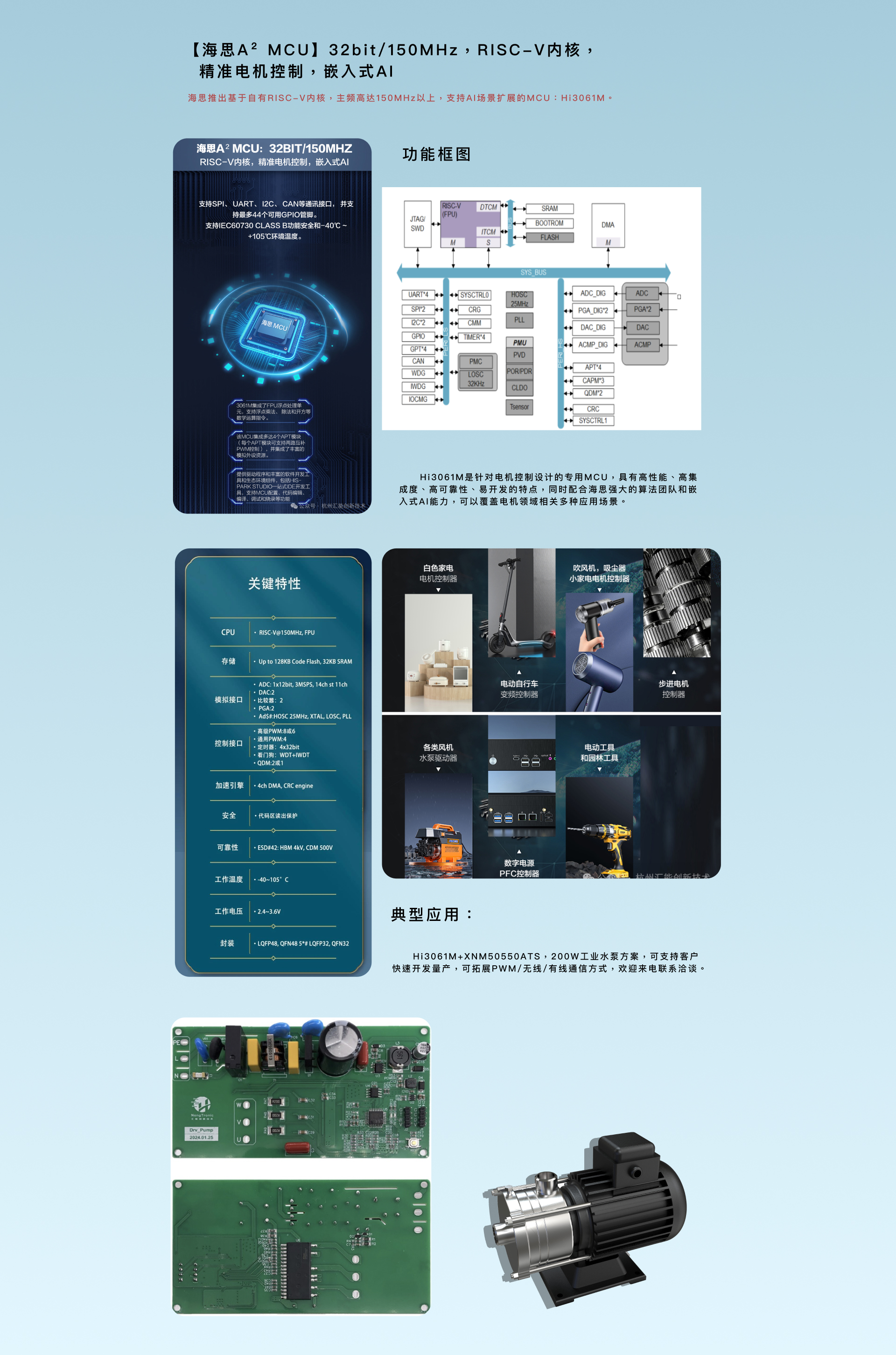 海思推出基于自有RISC-V内核,主频高达150MHz以上,支持AI场景扩展的MCU:Hi3061M。