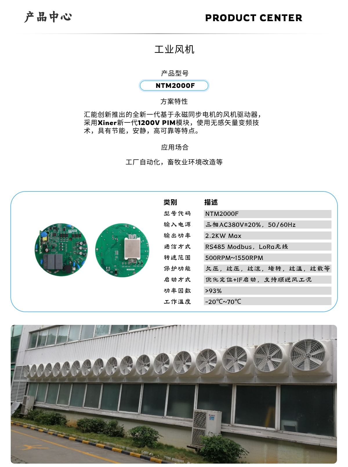 汇能创新推出的全新一代基于永磁同步电机的风机驱动器,采用Xiner新一代1200V PIM模块,使用无感矢量变频技术,具有节能,安静,高可靠等特点。
