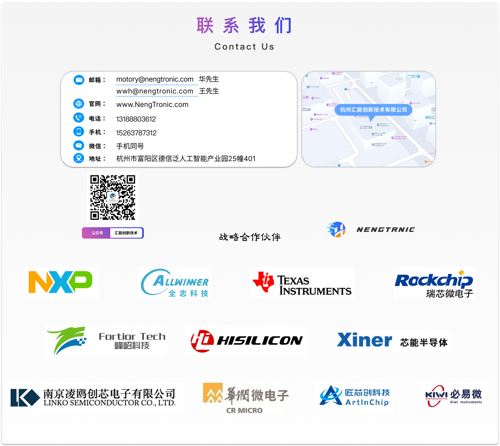杭州汇能创新技术有限公司(NengTronic Technology),专注于嵌入式彩屏控制与电机驱动控制器的研发、生产和销售。作为一家专注于推动行业智能化产品创新的高新技术企业,我们致力于为客户提供高效、智能的解决方案。